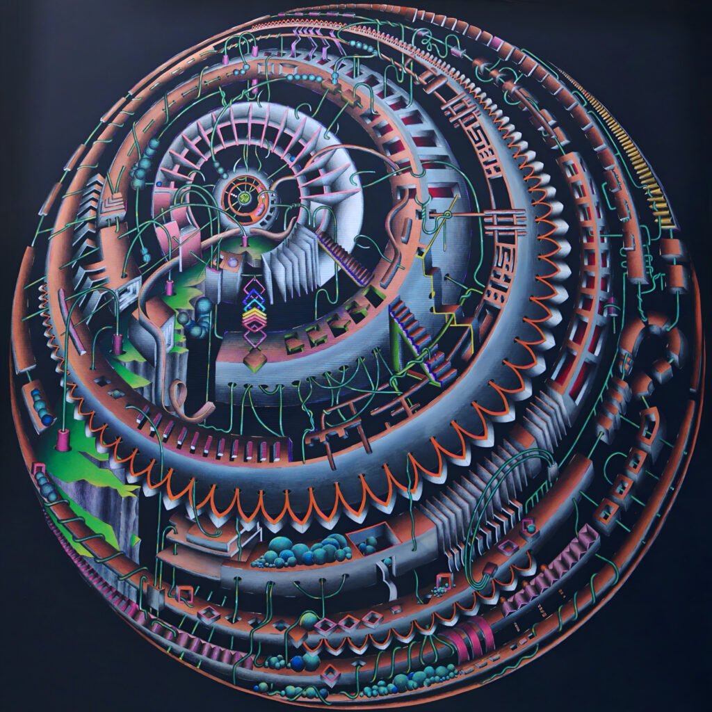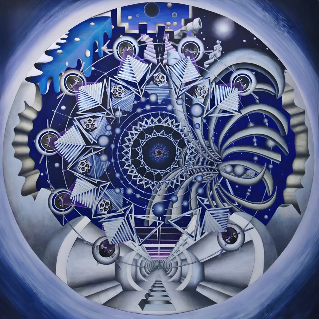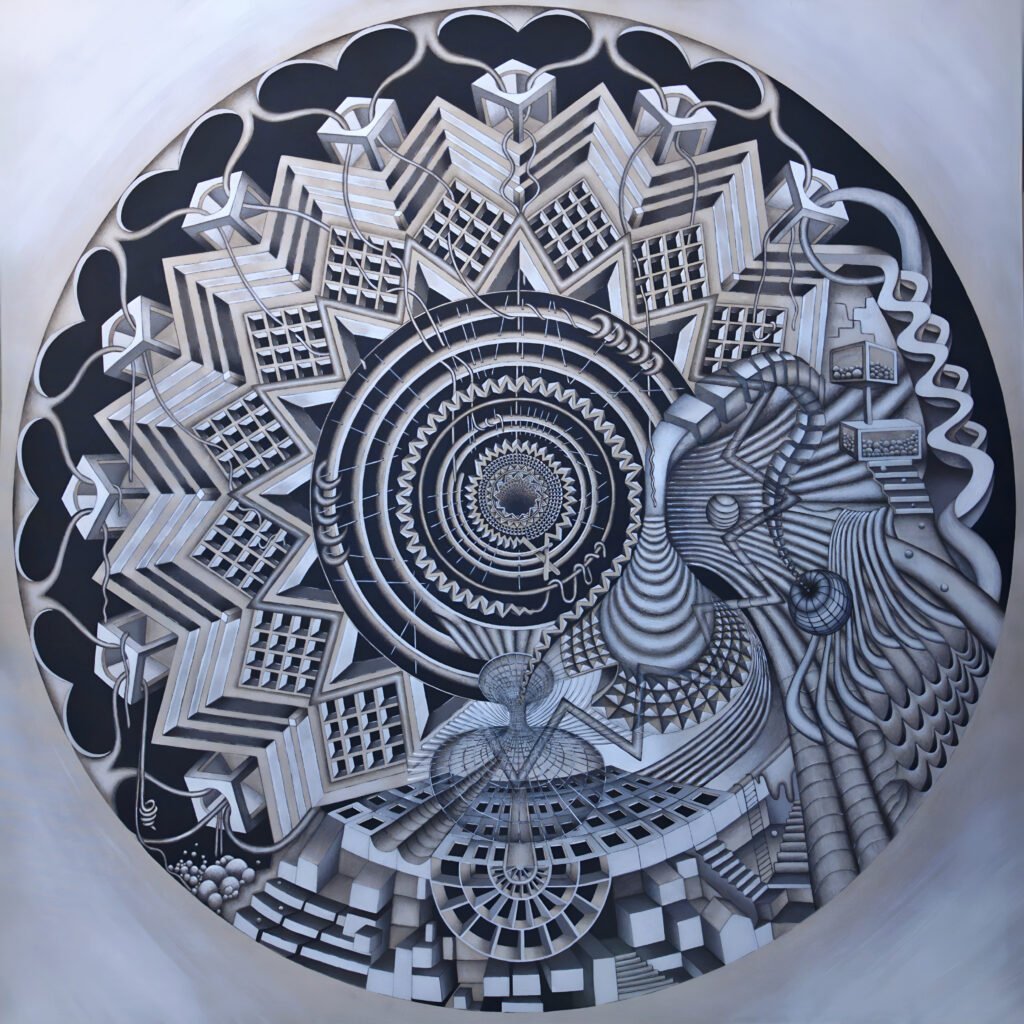 This work conceives time as a circular structure rather than a line moving forward toward a destination. Everything that exists is born, transforms, and dies, but this movement does not occur in the past or the future, it happens only in the present.